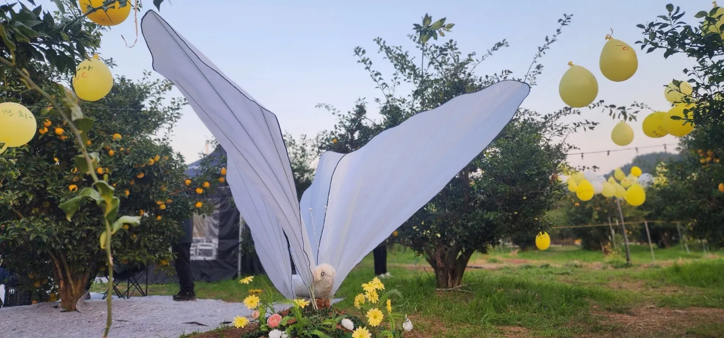 이 작업은 축제를 찾은 이들이 직접 자신의 표정을 그려 풍선을 매다는 참여형 설치 퍼포먼스로, 각자의 기억이 모여 하나의 거대한 ‘기억의 숲’을 이루는 과정을 담고 있습니다.